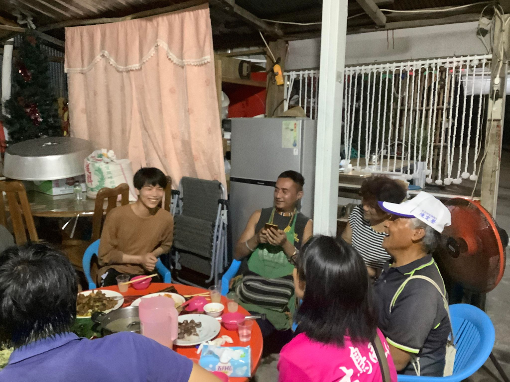 為了營造出自然的排灣語晚餐會,我們特別邀請了許多排灣族語的母語人士一起來用餐,他們也很有默契的在晚餐時只用排灣語溝通,酒酣耳熱之後才稍微”放水”一下講點華語,學員們也趁這個機會問各種不同排灣語的”怎麼說”。至於兩位”示範”的日本人因為都聽不懂所以反而覺得沒差,盡量吸收,也透過排灣語裡有的日語借字溝通。