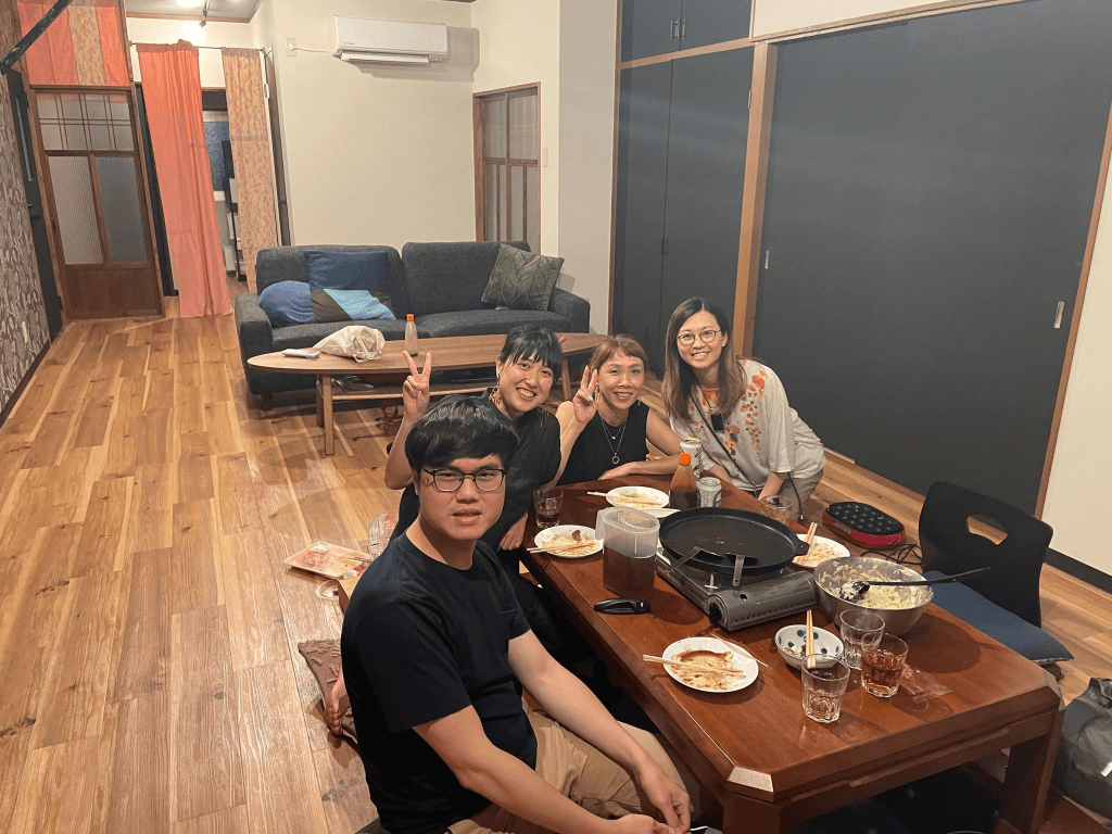 當天晚上 Irene 前往大阪北方的淡路市(不是淡路島喔!)參加民宅 Home Party,認識不同年齡層和背景的日本人還有外國朋友,也首次體驗自製大阪燒的感覺。