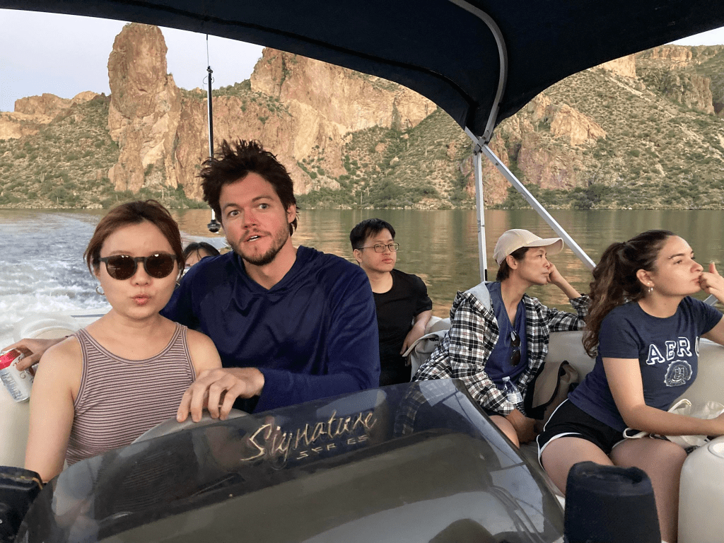 下午也是這次的重頭戲之一,Jon 拿出他的私人遊艇帶我們去亞利桑那的湖區遊湖和他的美國朋友一起同樂,一整天下來除了學了很多永遠忘不了的英文之外還有許多忘不了的回憶。