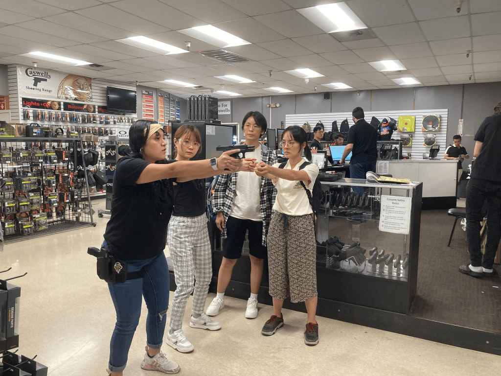 下午我們前往實彈射擊場體驗美國的第二憲法修正案(2nd amendement),這天女子可以免費射擊,但男子們也覺得很值得也付費參與。射擊場的執業人員非常專業,想盡的說明和示範也讓學員們好好地英語沈浸。