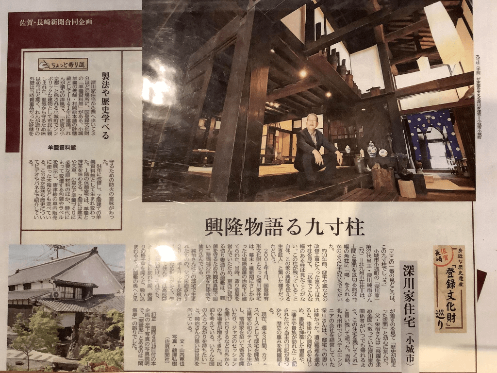 深川家就跟其他知名的佐賀巨賈”森永“和“味の素“或和”Glico” 一樣,在明治時期做生意成功後到東京發展獲取更大的財富,這些佐賀巨賈在當年也都結成情報聯盟,相互支援,所以他們家歷代跟更厲害的“森永”等等也都有很密切的關係。本來這個深川家是江戶時代的特許商人,200多年賣米賣酒但在江戶的制度下很難發財,明治時代改革開放突然暴富,之後開設銀行,透過投資融資賺取了真的驚人的財富。二次大戰後他們家撤回佐賀,把銀行的事業轉為買賣,目前最厲害的事業是某種過濾器,據說賣一顆可以賺幾千萬日幣,詳情就不可考了。