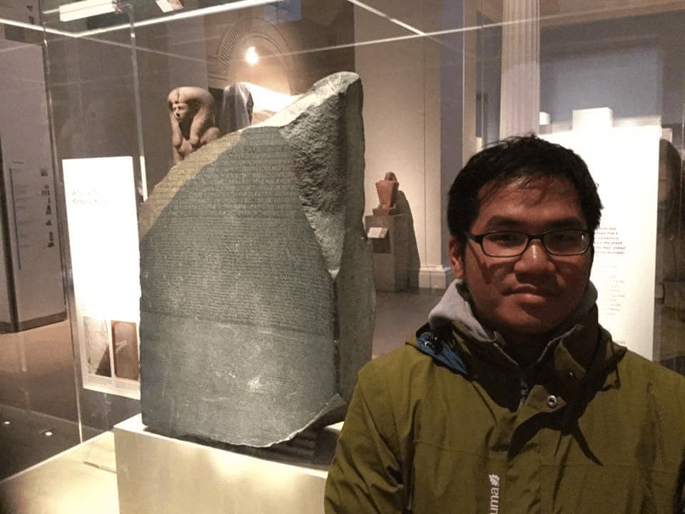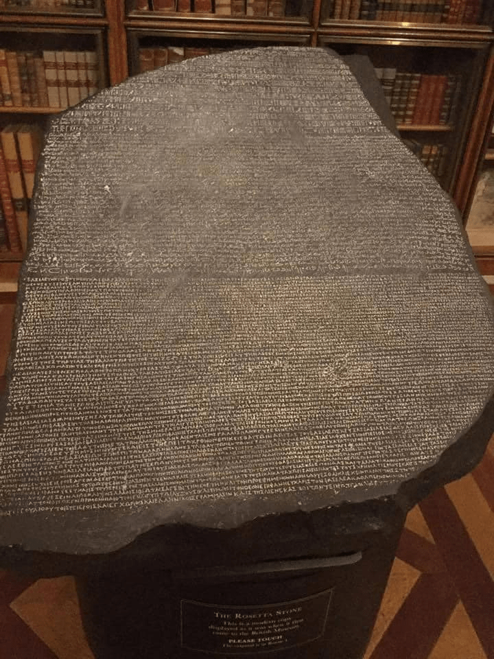 羅塞塔石目前在英國大英博物館,每次去倫敦我都要去看他一下摸一下它的複製品,向語言大前輩 Champollion 致敬。