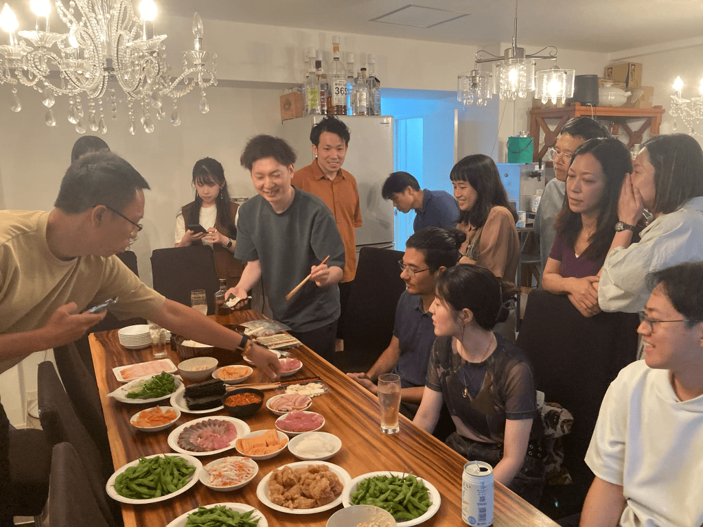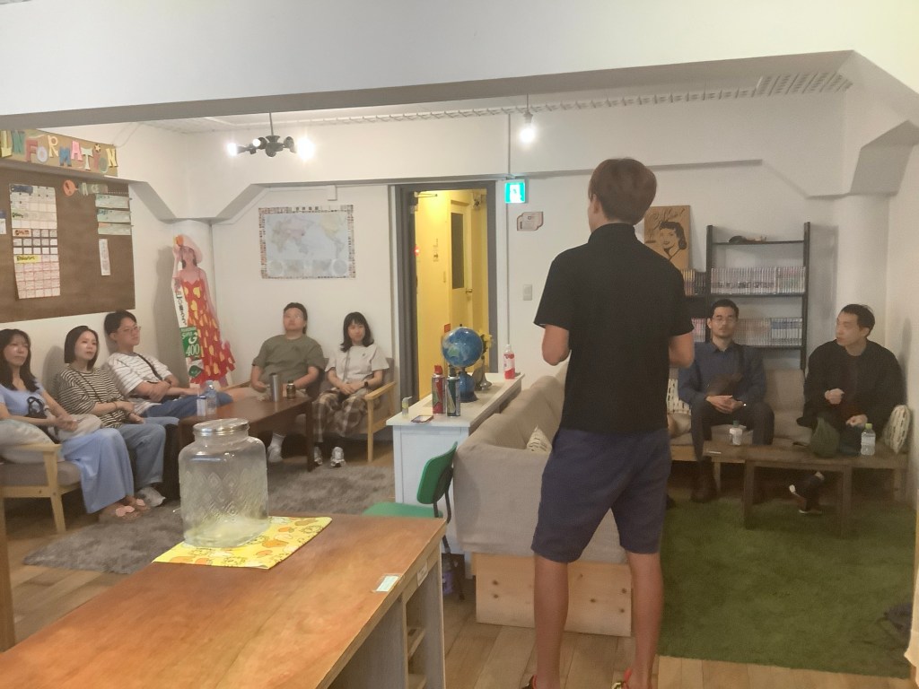 各方賢達聚集我們“沈浸式寄宿青旅”的基地 Hostel Chillax 舉辦歡迎會,大家先混熟掌握彼此的個性也很重要,而且這次有不少非華語人士參加,即使是同學之間聊天也必須講日語。