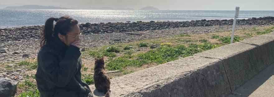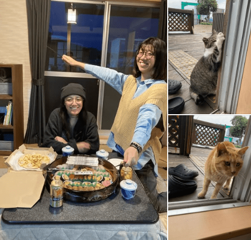 本次福岡貓島沉浸式有兩位熱愛貓咪且喜歡語言學習的朋友參加,雖然兩位充滿愛心的朋友表示日文不太行,但她們還是在沉浸式的氛圍下跟日本的貓咪志工們玩得很開心,也學習如何在貓島上當一個稱職的志工!