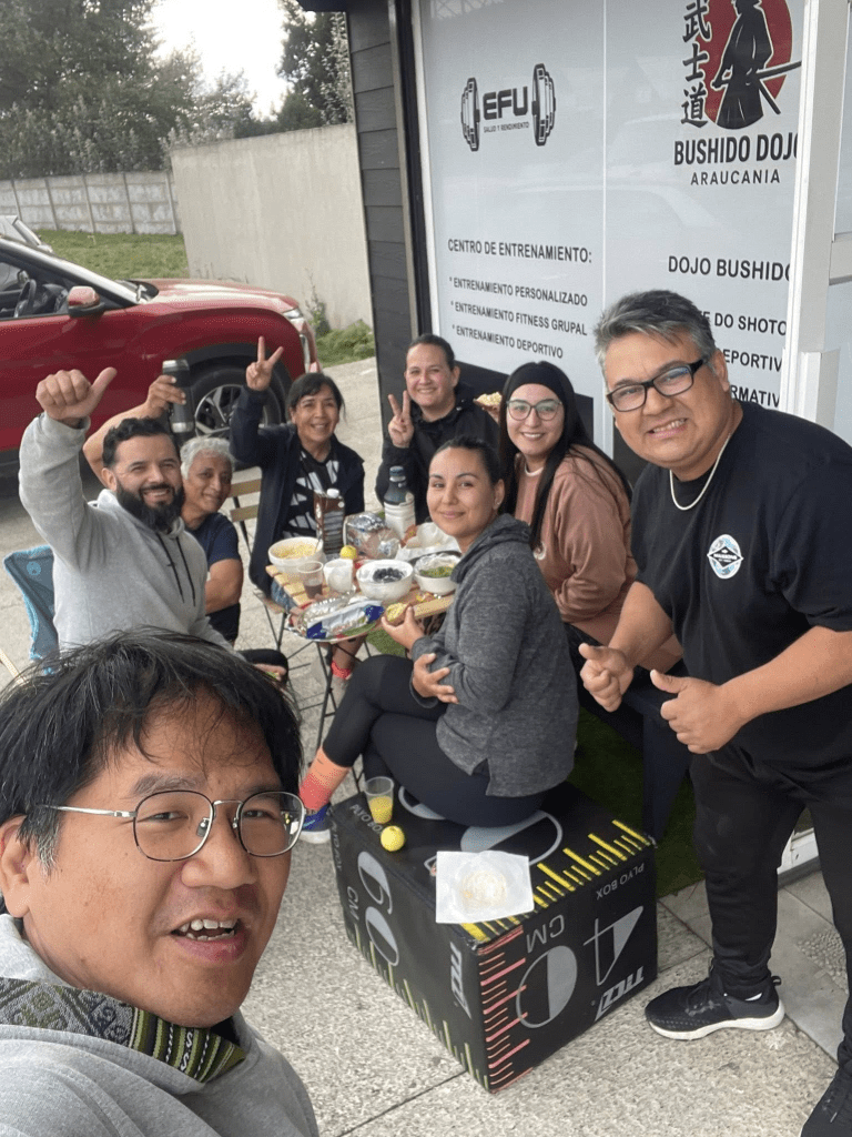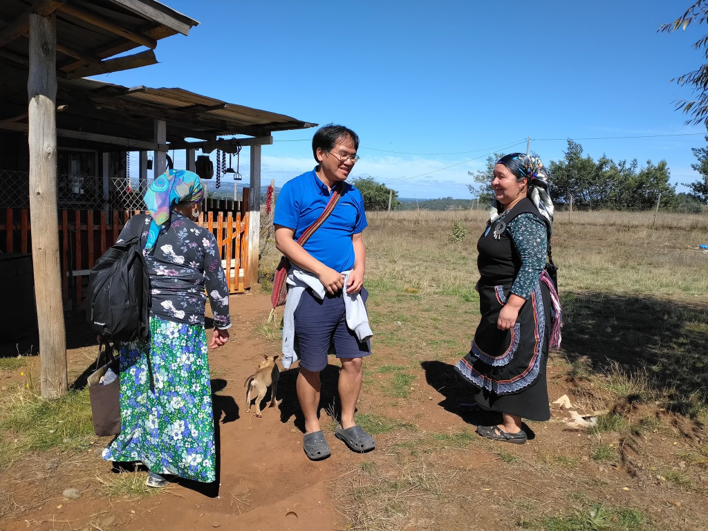 此外,同樣透過 Karina 介紹,我也拜訪了Temuco 當地的指標性的大學UFRO 和原住民研究中心的主任 Osvalde 交流,了解原住民運動和研究在智利的情況。我向他們報告了台灣原住民族語言和南島起源等他們第一次接受的資訊,解決了他們長久以來的一個大疑惑:為什麼他們在紐西蘭的毛利人朋友會常常去台灣?