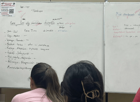 這門課比較類似台灣的「國文課」的修辭學,學員必須分析句子裡每個字的詞性和文法,並討論用法或延伸討論,這堂課反應出巴國有一群瓜拉尼語的母語和非母語的流利人士很重視自己國家真正的語言。