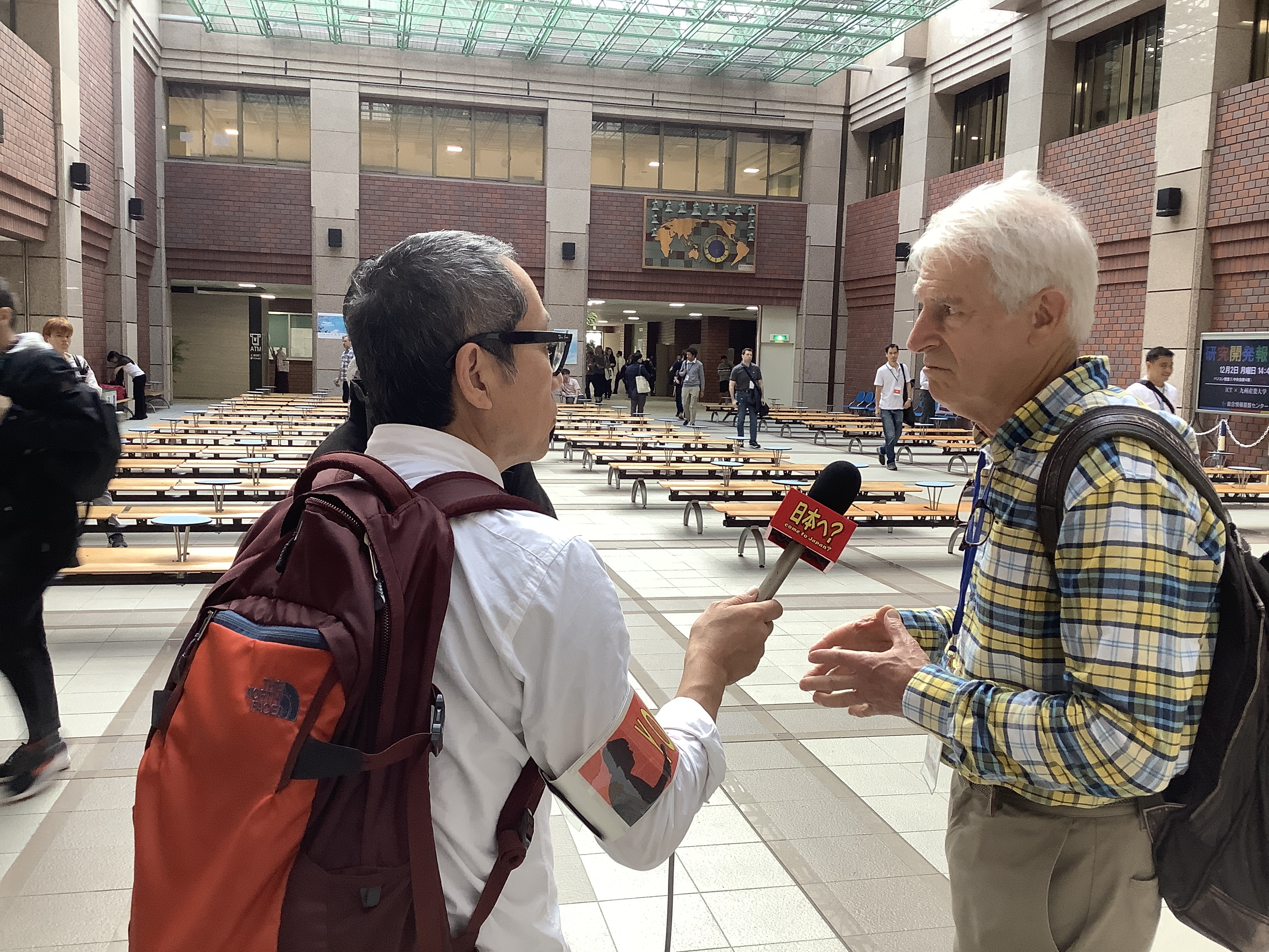 除了自己想參加,也想召集「多語習得活動網 polyglot.tw」的成員一起參加,於是我結合了既有的到日本沈浸式習得世界多語大會,讓成員能夠沈浸式習得日語又能參加多語大會,大會期間成員們都住在日本接待家庭,白天參加大會,晚上和日本接待家庭交流,國際交流和日語習得一次滿足! 插曲:世界多語大會被超知名節目「日本我來了」跟拍 我抵達福岡機場的時候剛好遇到日本超人氣節目「日本我來了」的劇組,這個節目主要的採訪對象是歐美人士,自然不會特別採訪我,但我剛好是粉絲,所以我自己跑過去說:「我是你們來自台灣的粉絲,可以跟你們照相嗎?」。他們不止爽快答應,還順手採訪我起來,我說我來日本參加世界多語大會,是喜歡學語言的人的大運動會,沒想到引起他們興趣,越問越多,最後雖然沒有當場決定「密着(跟拍)」,但隔天他們自己聯繫了多語大會的主辦人、九州產業大學的教授 Tim Keeley,聊了一個多小時最後決定來拍攝世界多語大會!