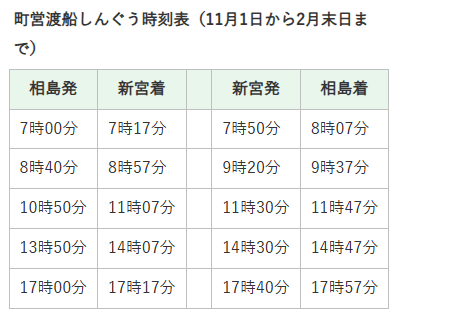 建議搭乘17:40新宮發的船班前往相島集合,當晚會有歡迎會(晚餐)。島上購物較困難,出發前記得買好想吃的零食跟飲料。