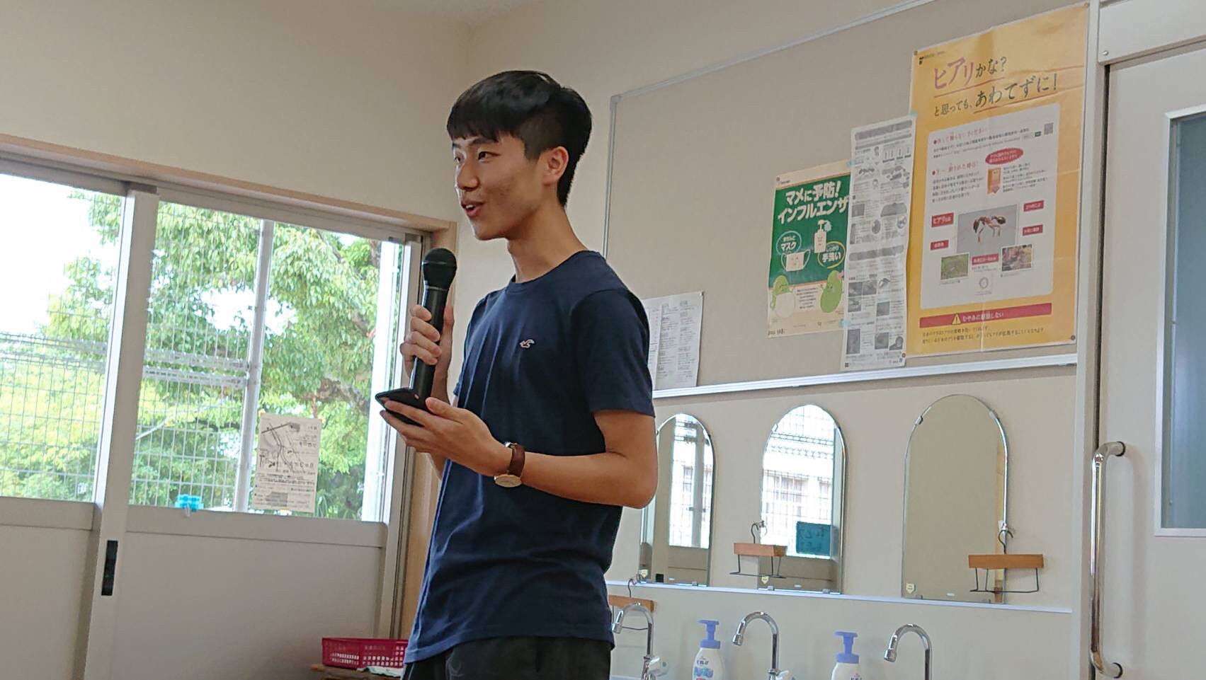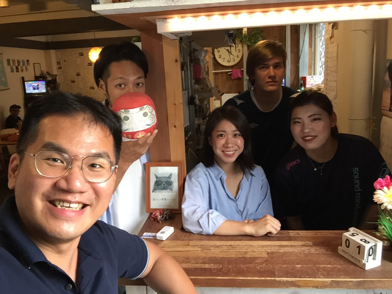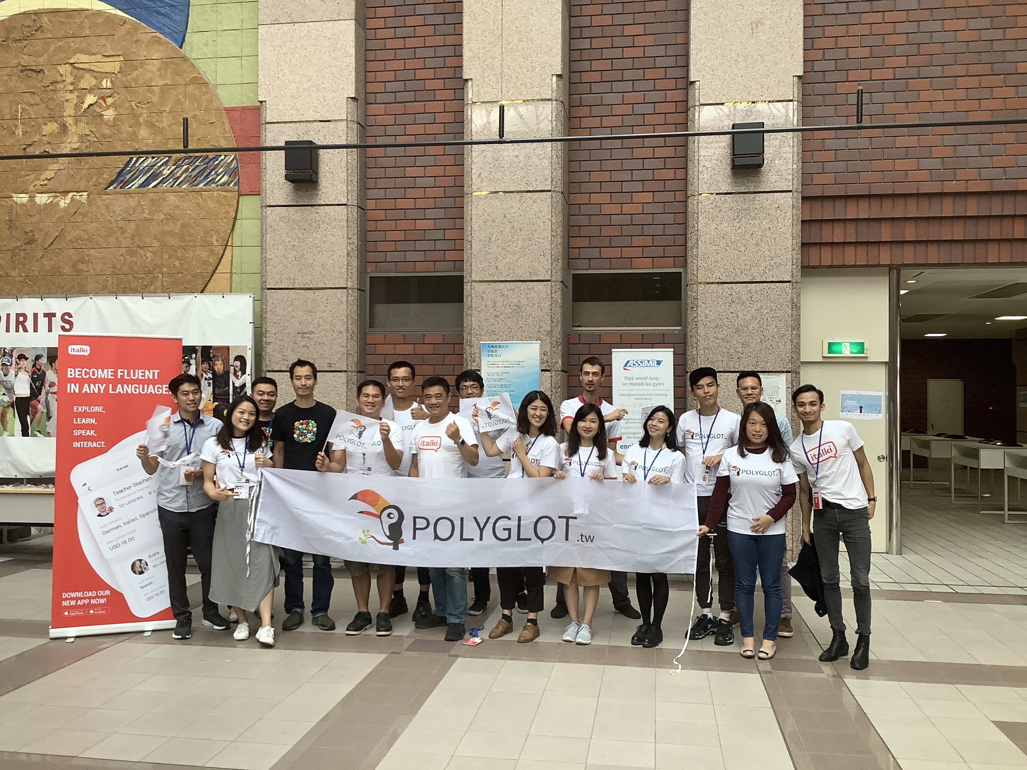 我抵達福岡機場的時候剛好遇到日本超人氣節目「日本我來了」的劇組,這個節目主要的採訪對象是歐美人士,自然不會特別採訪我,但我剛好是粉絲,所以我自己跑過去說:「我是你們來自台灣的粉絲,可以跟你們照相嗎?」。他們不止爽快答應,還順手採訪我起來,我說我來日本參加世界多語大會,是喜歡學語言的人的大運動會,沒想到引起他們興趣,越問越多,最後雖然沒有當場決定「密着(跟拍)」,但隔天他們自己聯繫了多語大會的主辦人、九州產業大學的教授 Tim Keeley,聊了一個多小時最後決定來拍攝世界多語大會!