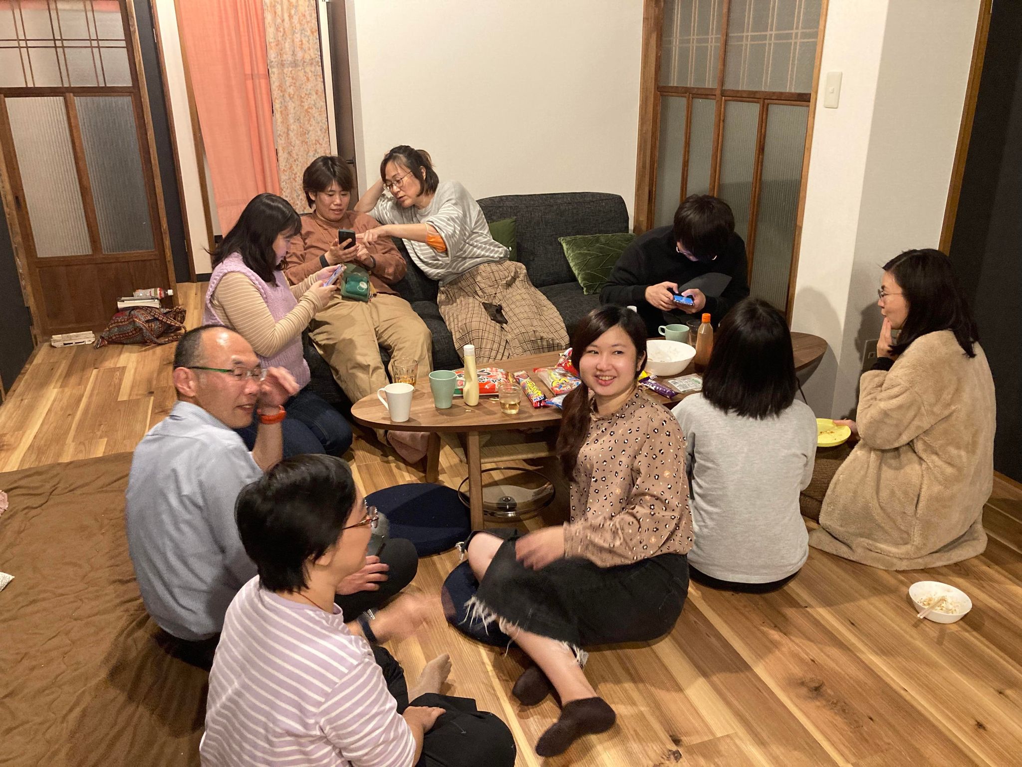 許多這次寄宿青旅期間遇到的日本友人們都來聽張老師的「結業發表」,我們也安排了線上參與的方案,讓張老師在台灣的家人朋友也能一起參與,沈浸式的學長姐們也可以透過網路和日本老朋友們敘舊。張老師的報告非常精彩,日本人讚不絕口(這絕對不是“建前”)。